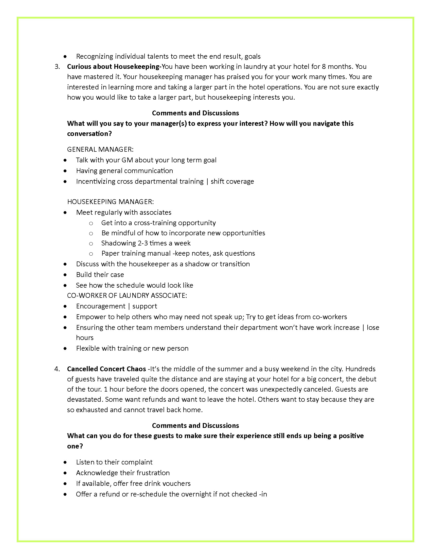 - Allows for cross-utilization amongst staff to fill shifts without adding dedicated headcount (i.e., a room attendant working in breakfast)